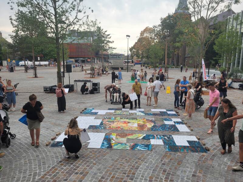Bij de Primark is een dansvoorstelling, dansers onder een wit object, ze bewegen als een amoebe. In de loop der jaren is de abstractie bij Kaapstad toegenomen. Dat vraagt om meer aandacht van het publiek. Dat is ook zo met de dixies op de Heuvel. Wie niet naar binnengaat zal denken dat die er staan omdat er wordt verbouwd in de stad.