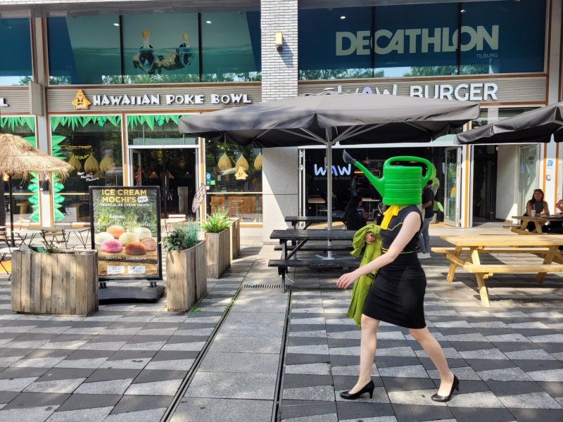 Een dame met een gieter op het hoofd loopt door de stad. Ze lijkt op weg naar een hooiberg die op het plein staat. Iets verderop gaat een rood autootje over de kop. De chauffeur zit schaterend achter het stuur. Duidelijk, het is Kaapstad, het zomerse festival in Tilburg waar kunstenaars de stad overnemen met vervreemdende installaties. Maar die hooiberg, die intrigeert me. De ene hooiberg is de andere niet.