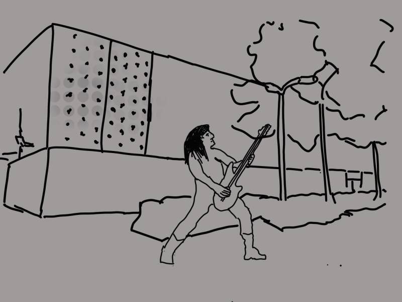 Een beeld voor iedereen die zich inzet voor de muziek, past in de visie. Op die plek bij 013 zou dat mogelijk moeten zijn. Ik denk aan een gitarist, een herkenbaar beeld. No nonsense. Ik zie een rocker voor me. De armen vol tatoeages, met namen erop van mensen die veel voor de muziek hebben betekend. Tilburgers kunnen zelf die namen aandragen.