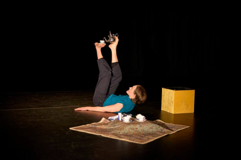 De Duits-Iraanse Roxana Küwen Arsalan is eveneens jongleur. Zij jongleert vooral met haar voeten. Ook haar voorstelling ‘Omâ or the privileges of the potato’ beklijft en dat heeft niet in het minst te maken met het persoonlijke verhaal dat ze met het publiek deelt.