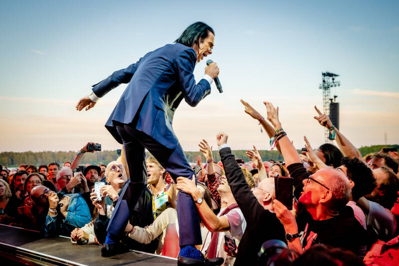 Vaak wordt Nick Cave vergeleken met een hogepriester en hij heeft inderdaad veel zinnigs en inhoudelijks te melden en hij heeft iets onaantastbaars over zich. Maar hij daalde op Best Kept Secret van zijn altaar af en mengde zich gewillig tussen zijn volgelingen. Hij liet zich zelfs op handen dragen.